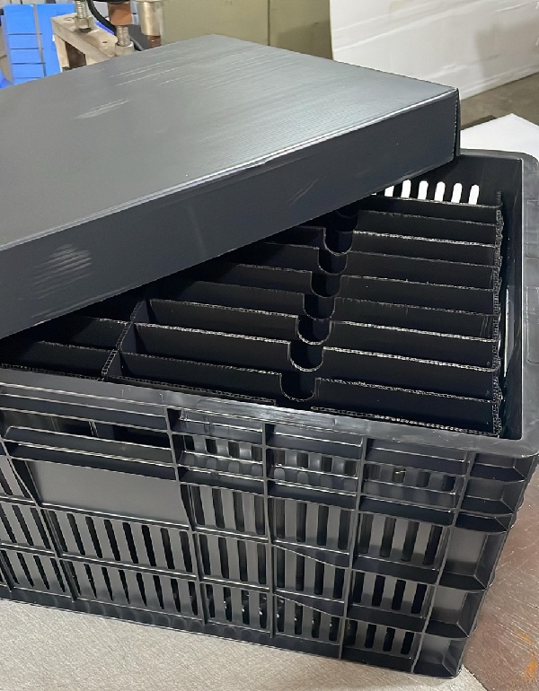 CAIXA PLÁSTICA VAZADA COM DIVISÓRIAS PARA 22 PRATOS